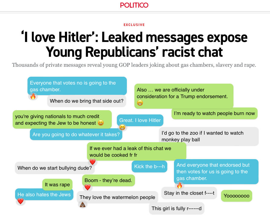 ‘I love Hitler’: Leaked messages expose Young Republicans’ racist chat